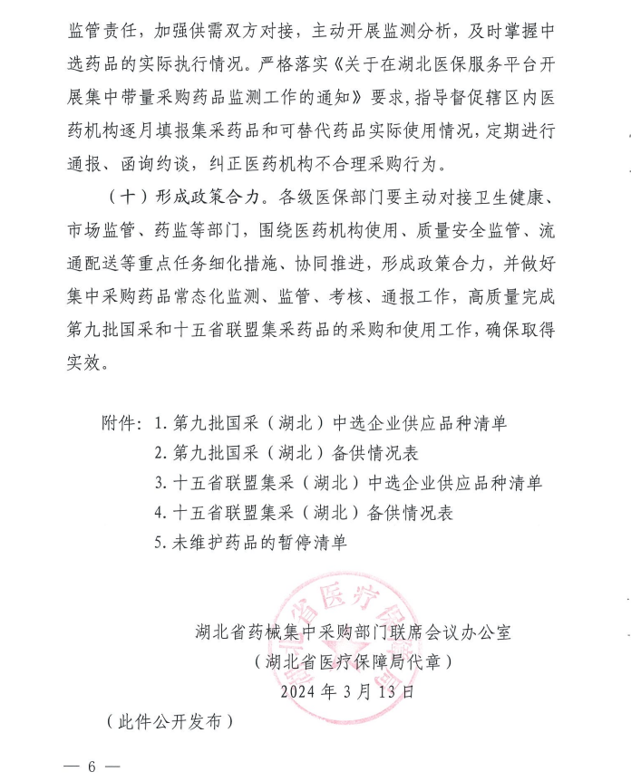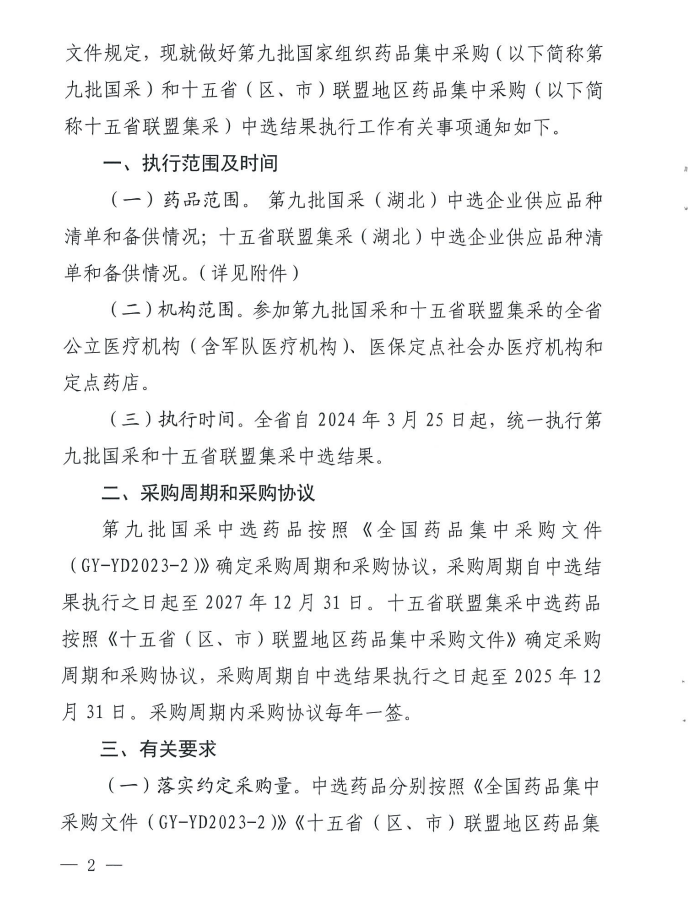 【鄂州】关于执行第九批国家组织药品集中采购和十五省(区、市)联盟集中采购中选结果的通知