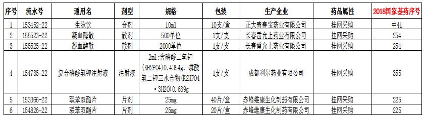 根据省卫生健康委员会《关于对2018年版国家基本药物序号标识有关事项的函》,现对药品交易和招标系统部分药品目录予以相应国家基本药物序号标识(见下表),请相关医疗机构及时调整采购数据信息。