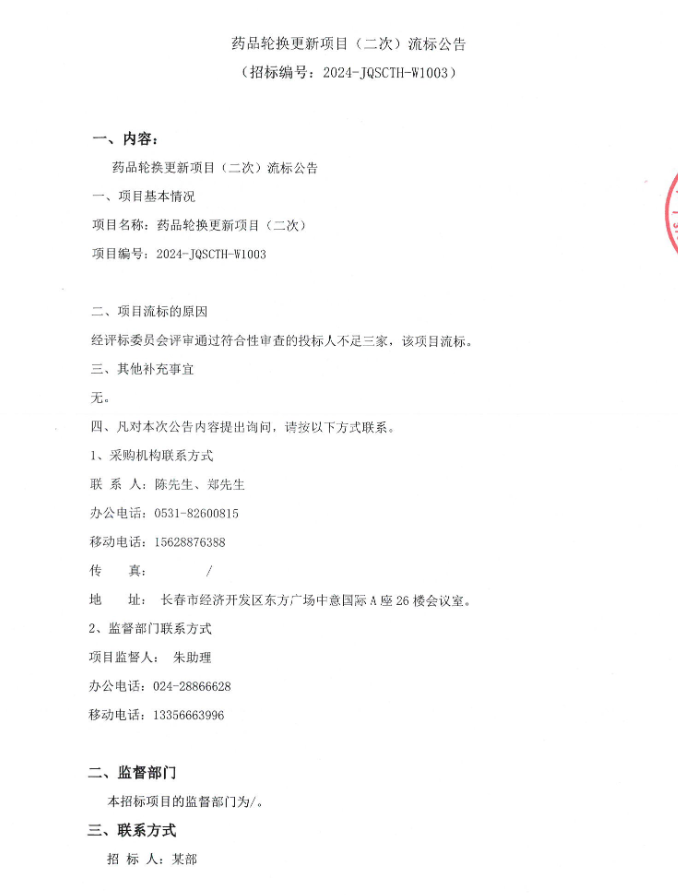 【军队采购】军队药品轮换更新项目(二次)流标公告