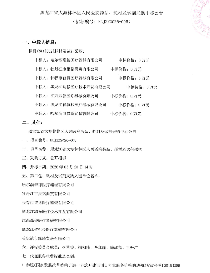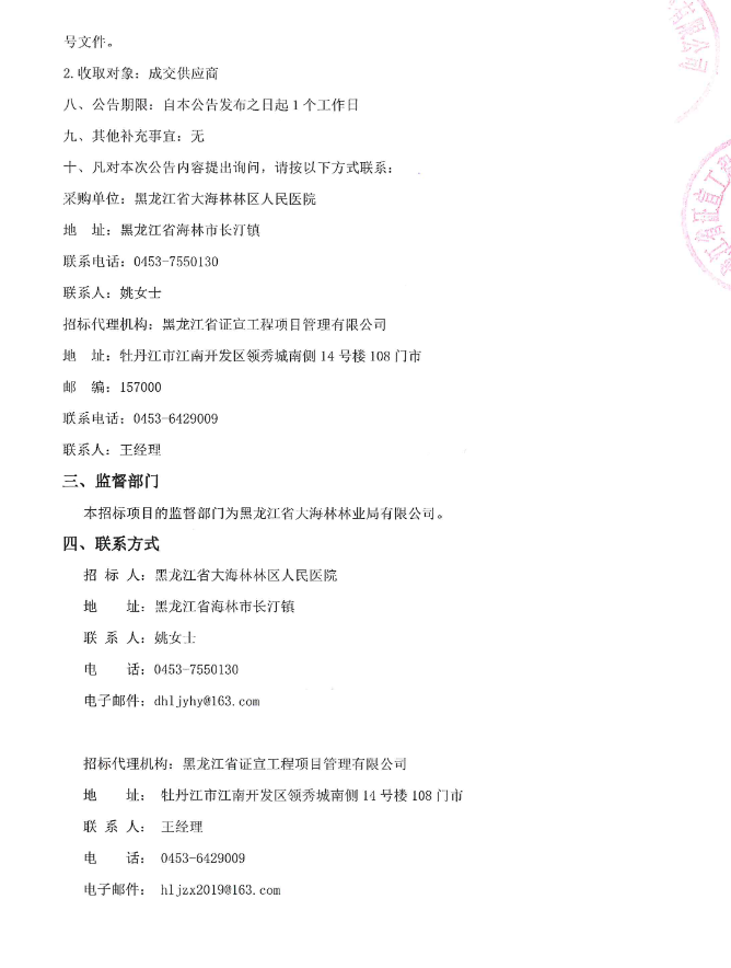 【牡丹江市大海林林区人民医院】黑龙江省大海林林区人民医院药品、耗材及试剂采购中标公告
