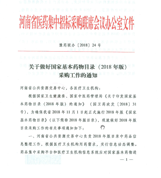 【河南】关于做好国家基本药物目录(2018年版)采购工作的通知