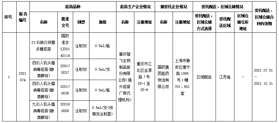 【江苏】江苏省药品监督管理局关于江苏省非免疫规划疫苗委托配送和区域仓储情况信息的公告(2021年第12号)