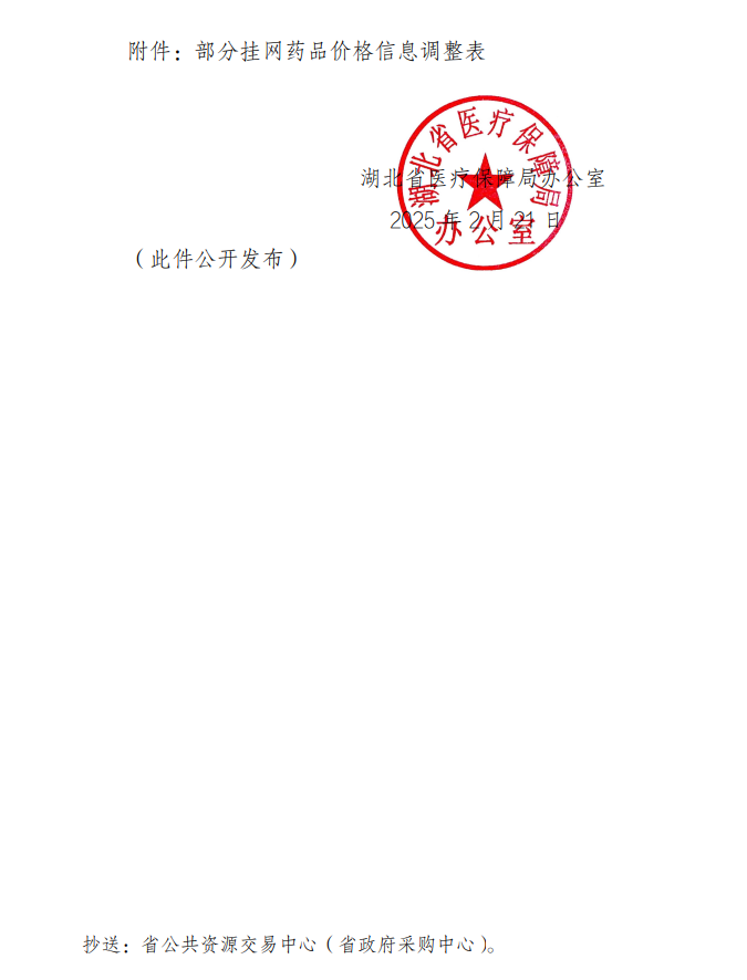 【鄂州】鄂医保办函〔2025〕12号省医疗保障局办公室关于调整部分挂网药品价格信息的通知