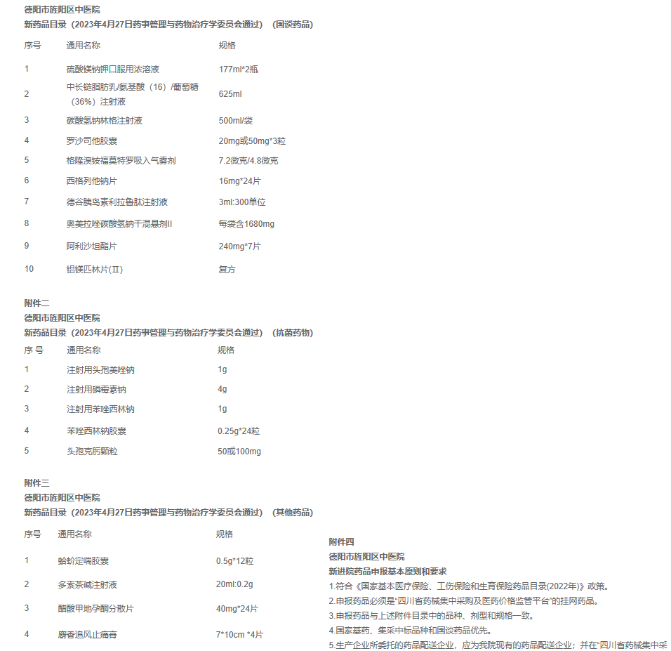 旌阳区中医院各药品经营配送企业: