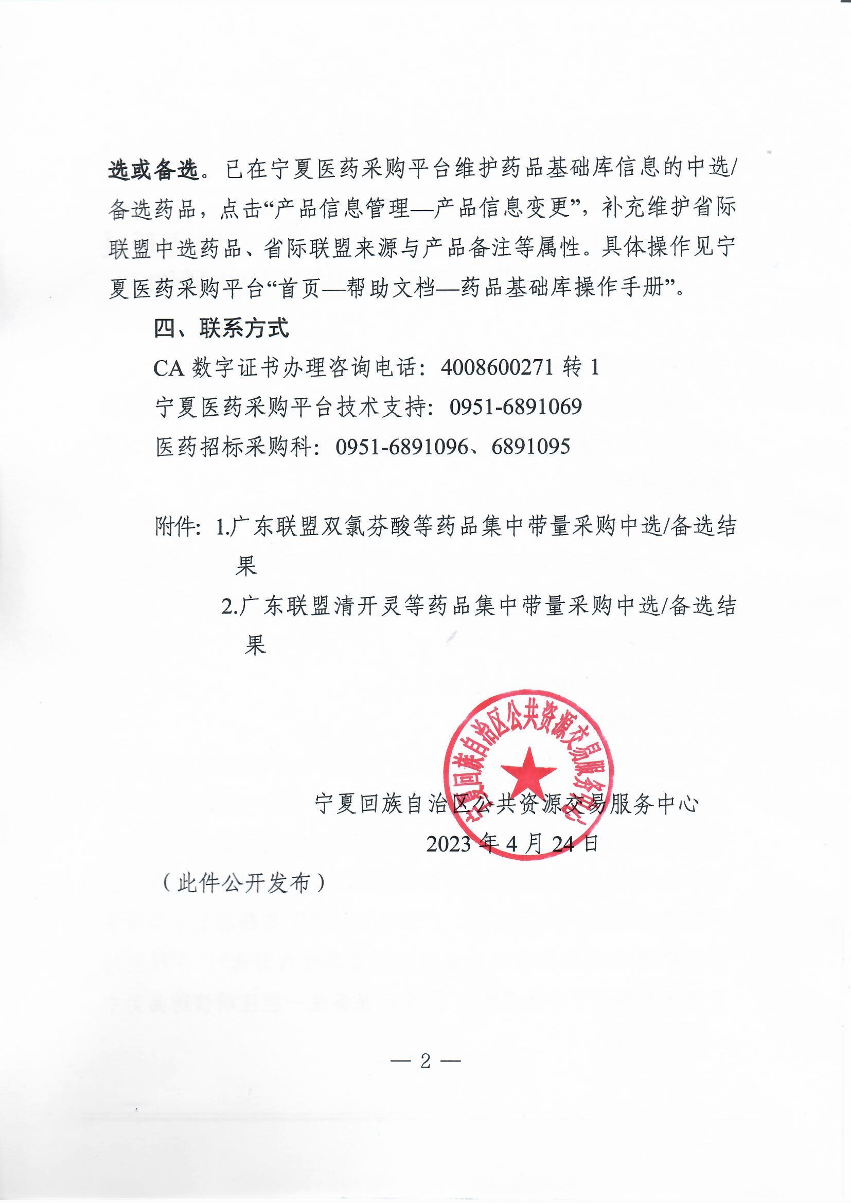 2.广东联盟清开灵等药品集中带量采购中选/备选结果。
