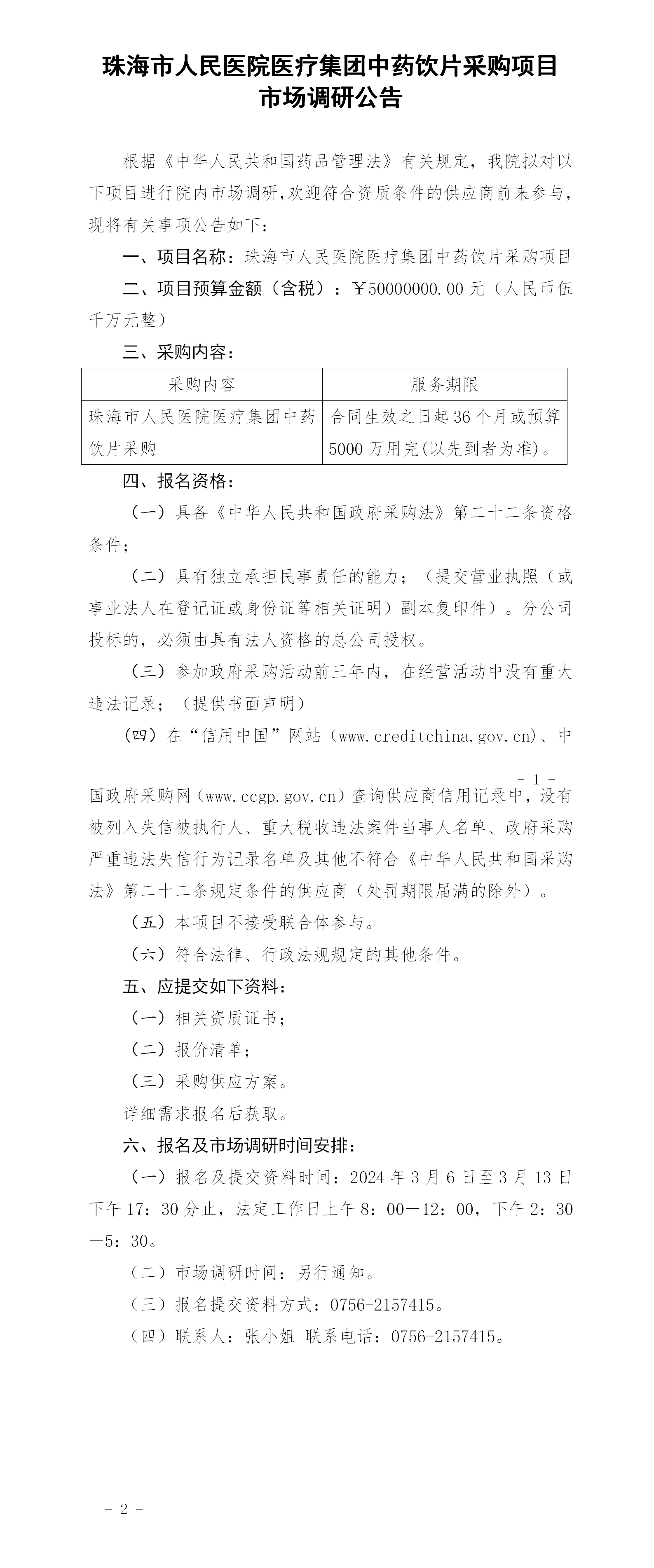 【珠海市人民医院】广东省珠海市人民医院市场调研公告(珠海市人民医院医疗集团中药饮片采购项目)