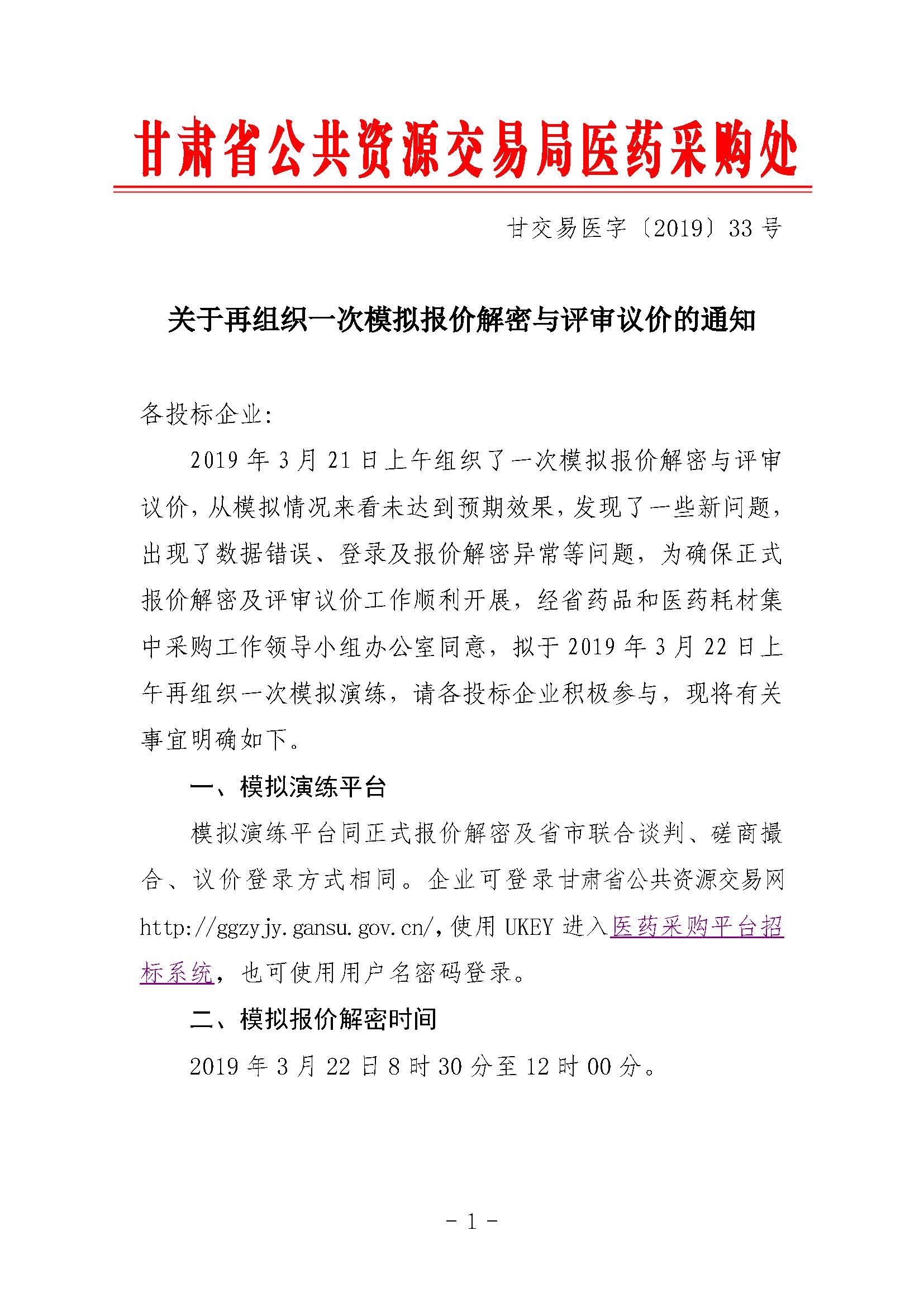 【甘肃】甘肃省关于再组织一次模拟报价解密与评审议价的通知