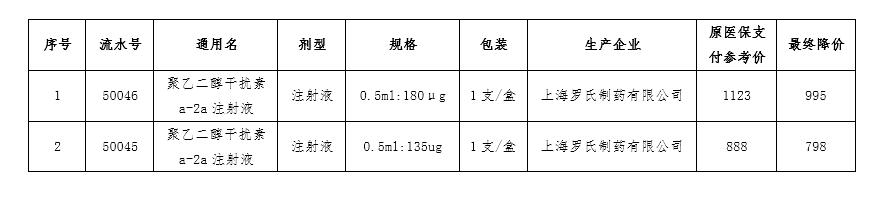 上海罗氏制药有限公司申请对该企业自产的“聚乙二醇干扰素a-2a注射液”在我省降价供应。经委医药采购联席会研究,原则同意“聚乙二醇干扰素a-2a注射液”降价供应(详见附件)。自本通知下发之日起,相关医疗机构及药品企业按最终降价价格遵照执行。