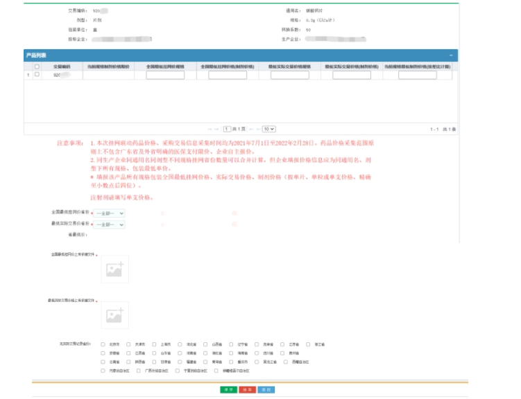无实际交易记录省份:如当前规格部分省份挂网价格无实际交易,为避免出现不必要的投诉请务必进行勾选;