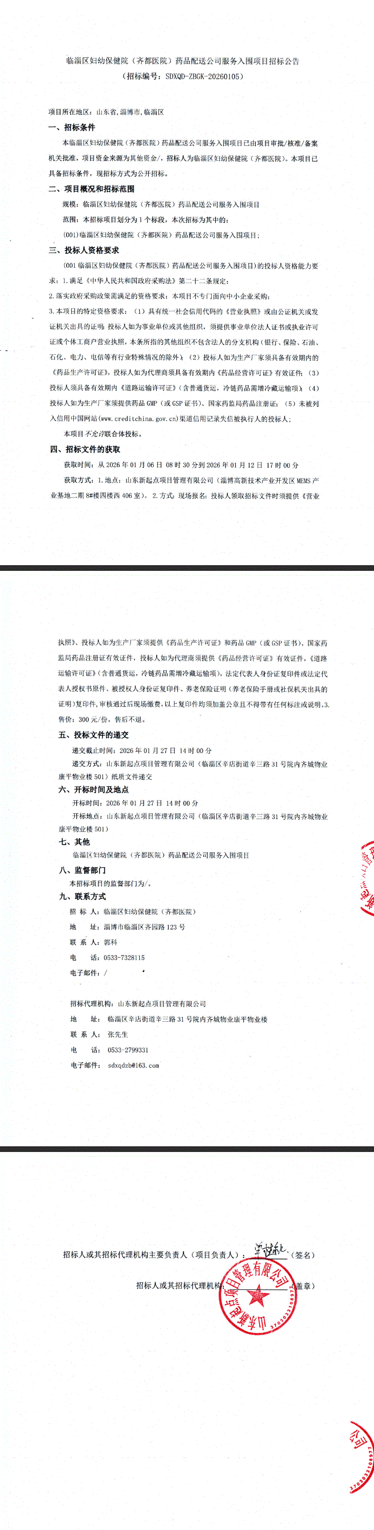 【淄博市临淄区妇幼保健院】山东省淄博市临淄区妇幼保健院(齐都医院)药品配送公司服务入围项目招标公告