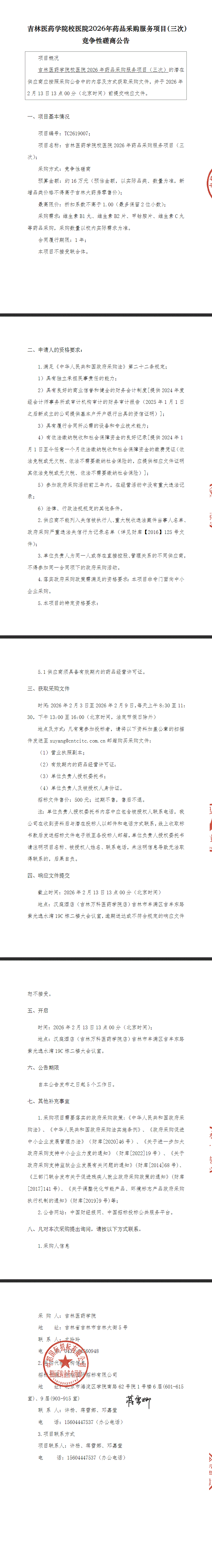 【吉林医药学院】吉林医药学院校医院2026年药品采购服务项目-招标公告(三次)