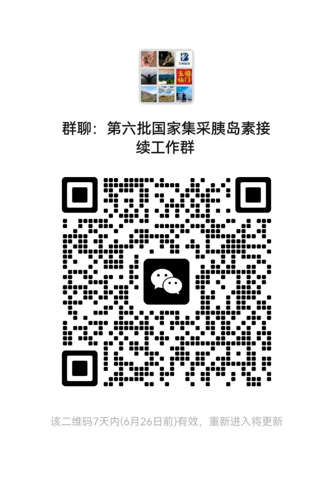 中选生产企业及时扫描文件下方二维码进入第六批国家集采胰岛素接续工作群,按群公告要求规范开展相关工作。
