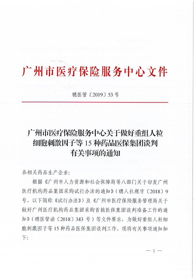 【广州】广东省广州市医疗保险服务中心关于做好重组人粒细胞刺激因子等15种药品医保集团谈判有关事项的通知