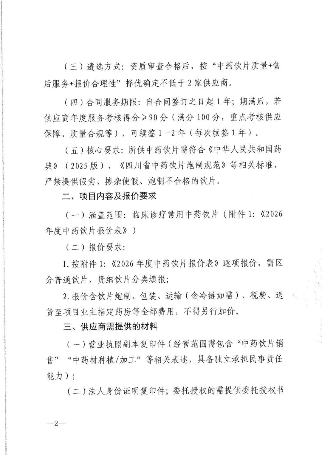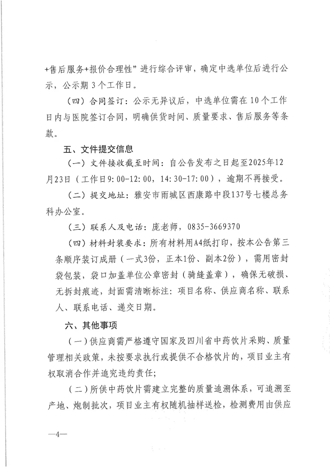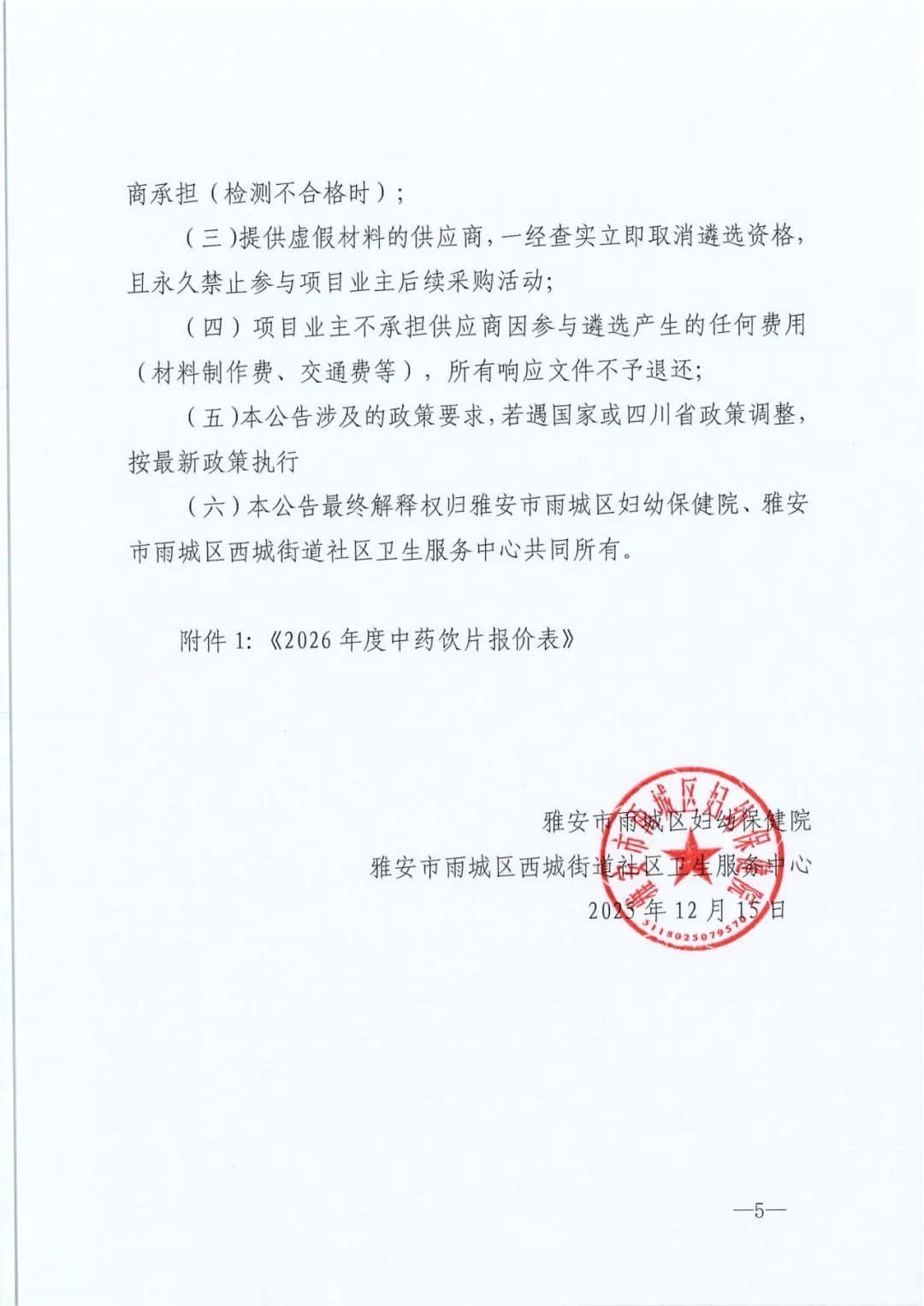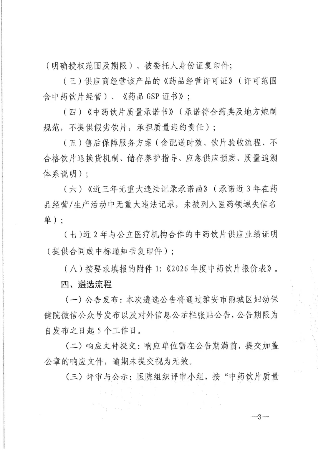 【雅安市雨城区妇幼保健院】四川省雅安市雨城区妇幼保健院关于2026年度中药饮片供应商遴选公告