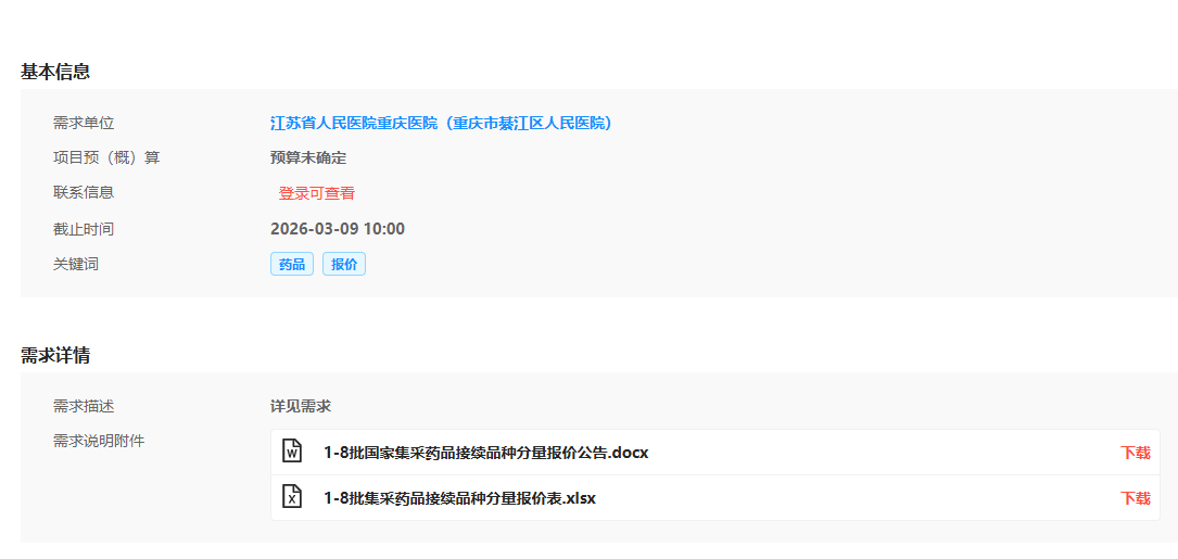 【江苏省人民医院重庆医院】江苏省人民医院重庆医院(重庆市綦江区人民医院)1-8批国家集采药品接续品种分量报价工作的公告调查问卷