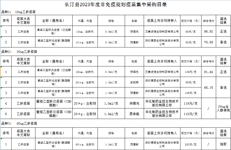 【龙岩】长汀县疾控中心关于长汀县2023年非免疫规划疫苗集中采购目录的公示
