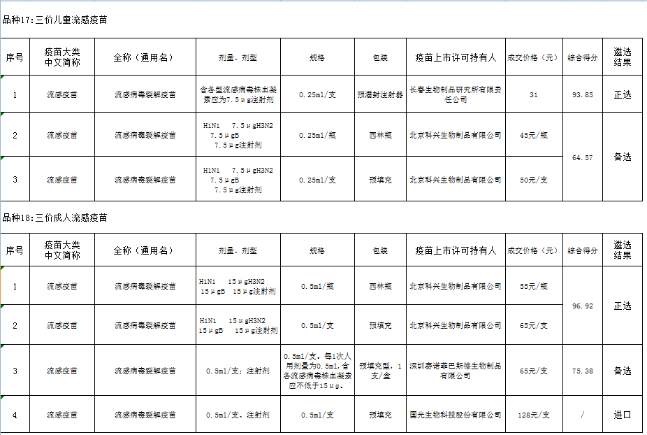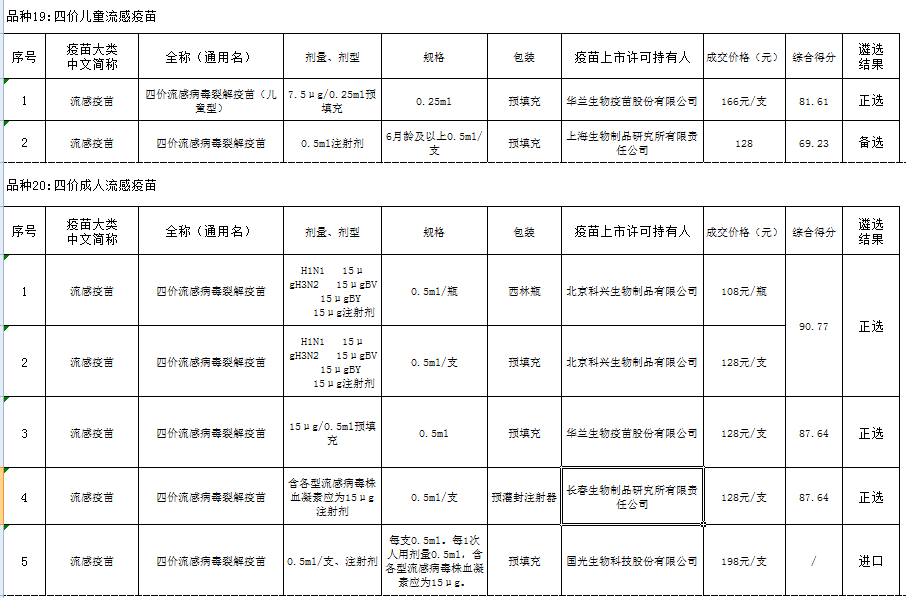 附件:《长汀县2023年非免疫规划疫苗集中采购目录》