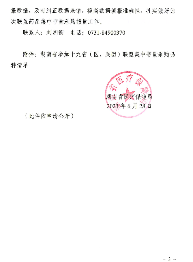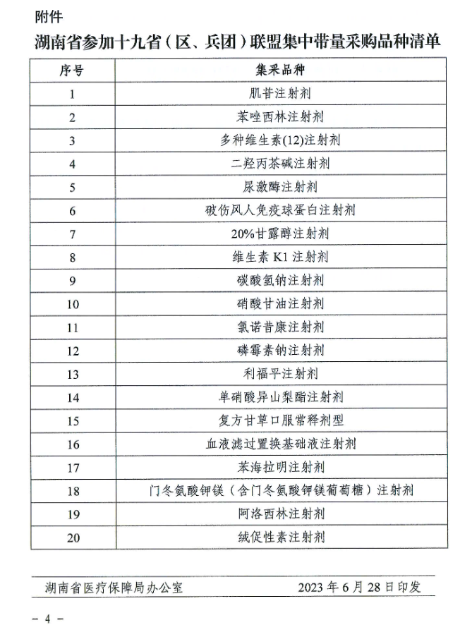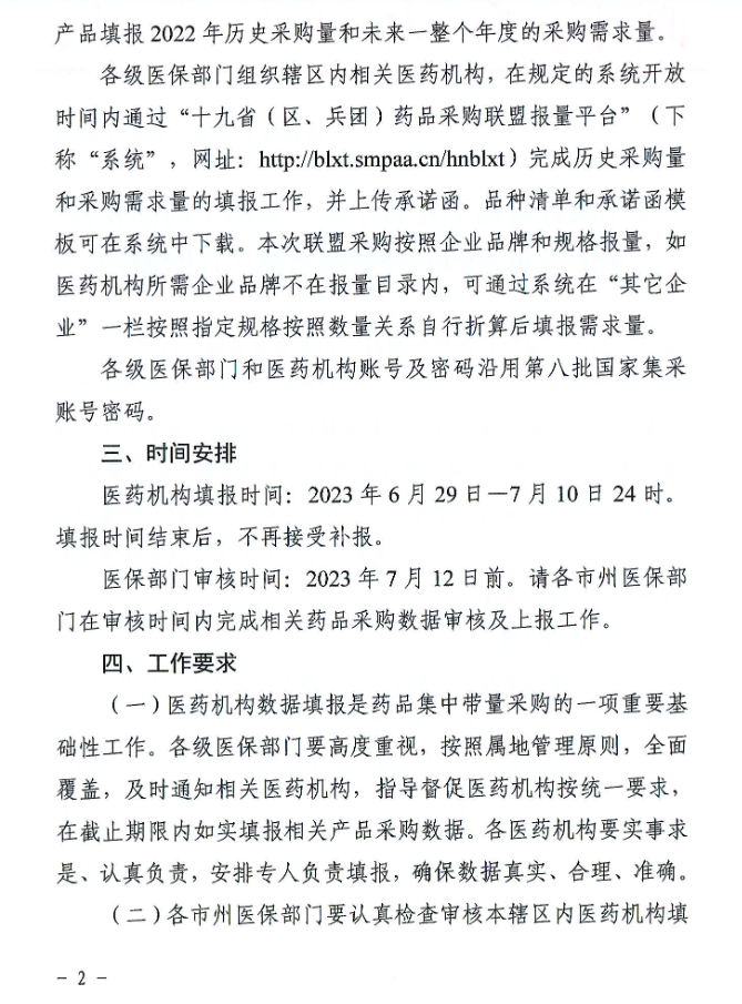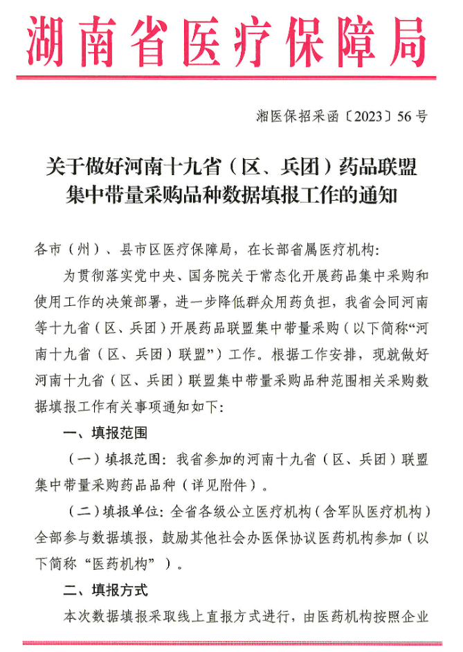 【衡阳】湘医保招采函〔2023〕56号-关于做好河南十九省(区、兵团)药品联盟集中带量采购品种数据填报工作的通知