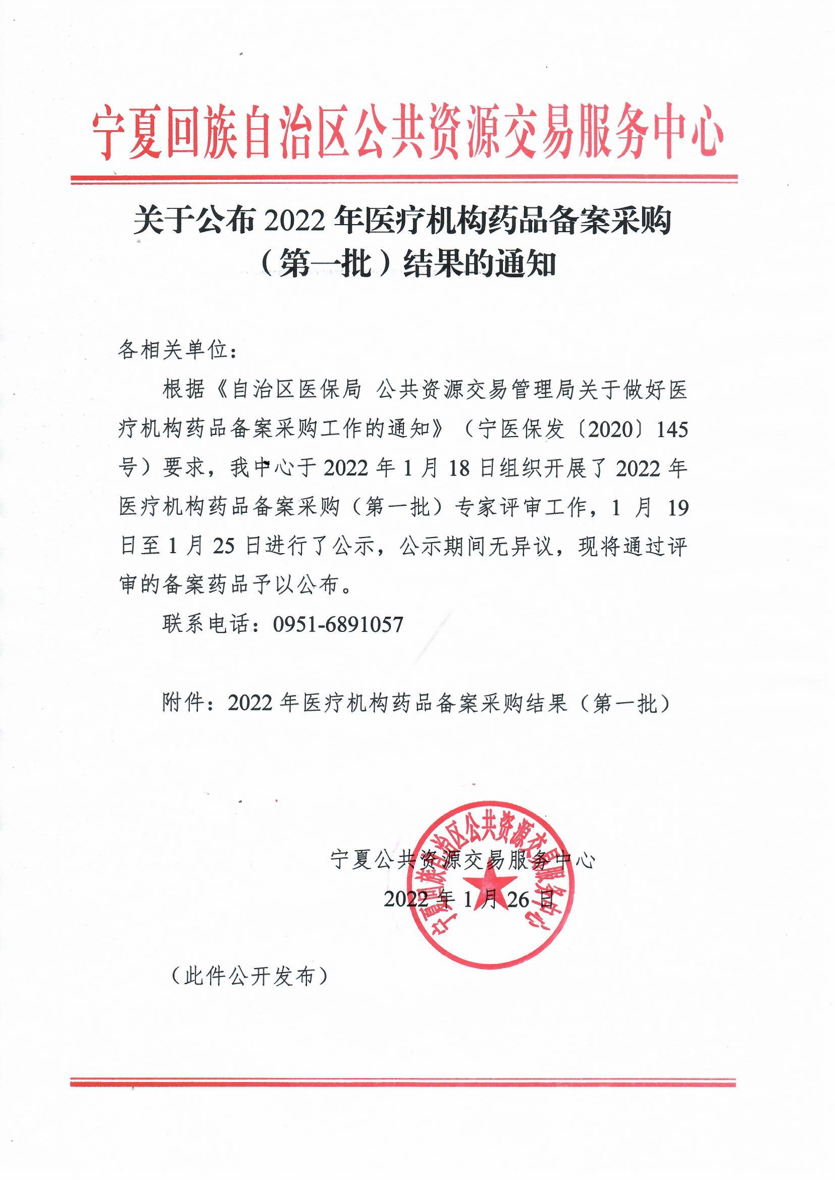 【宁夏】宁夏回族自治区关于公布2022年医疗机构药品备案采购(第一批)结果的通知(20220126)