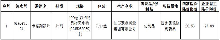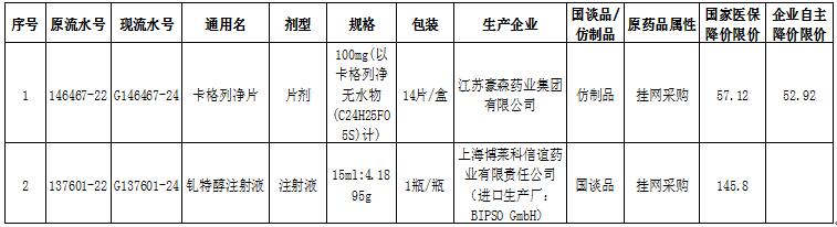 一、部分“挂网采购药品”统一调整为“国家医保谈判药品”,并依据企业自主申请、以该品现行全国最低价下调相关药品的“企业自主降价限价”,(详见下表),请各医疗机构及时下调价格。