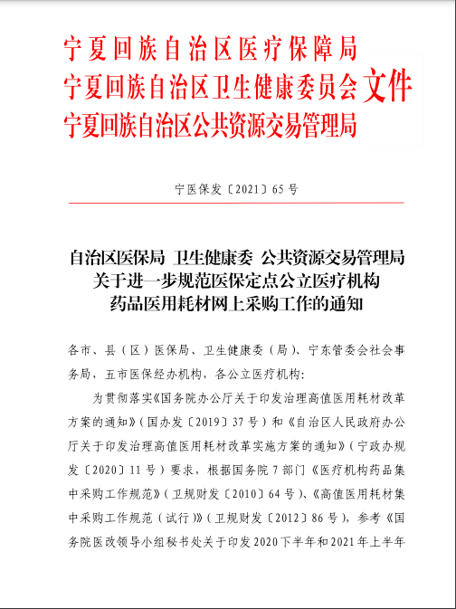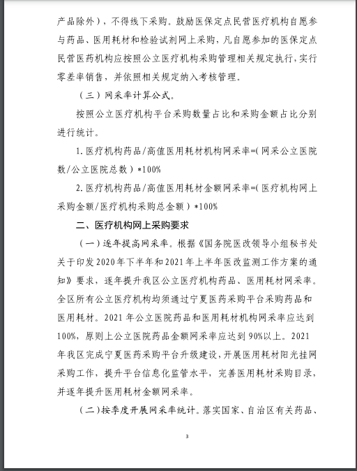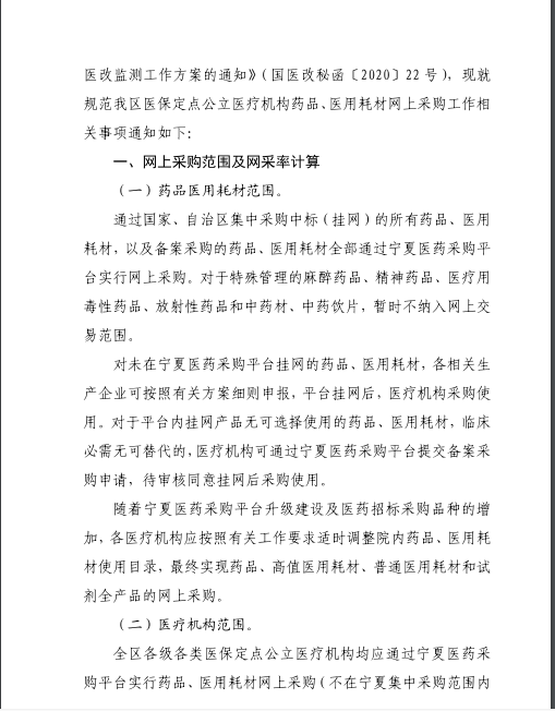 【宁夏回族自治区】宁夏回族自治区医保局卫生健康委公共资源交易管理局关于进一步规范医保定点公立医疗机构药品医用耗材网上采购工作的通知