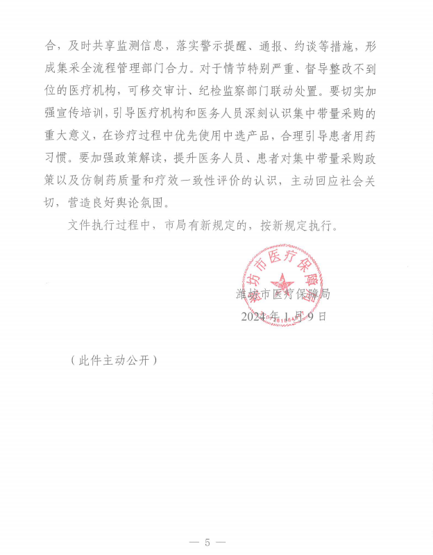 【潍坊】关于进一步加强药品和医用耗材集中带量采购全流程管理的通知