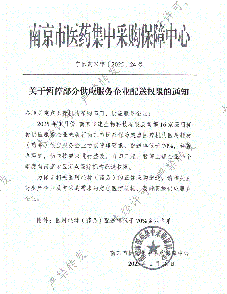 【南京】江苏省南京市关于暂停部分供应服务企业配送权限的通知