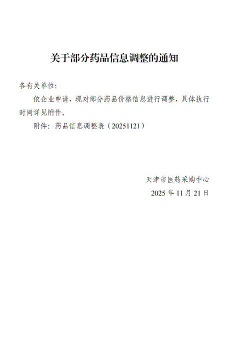 【天津】天津市关于部分药品信息调整的通知(20251121)