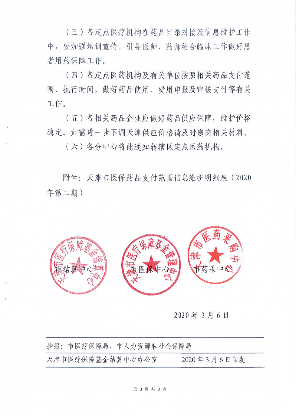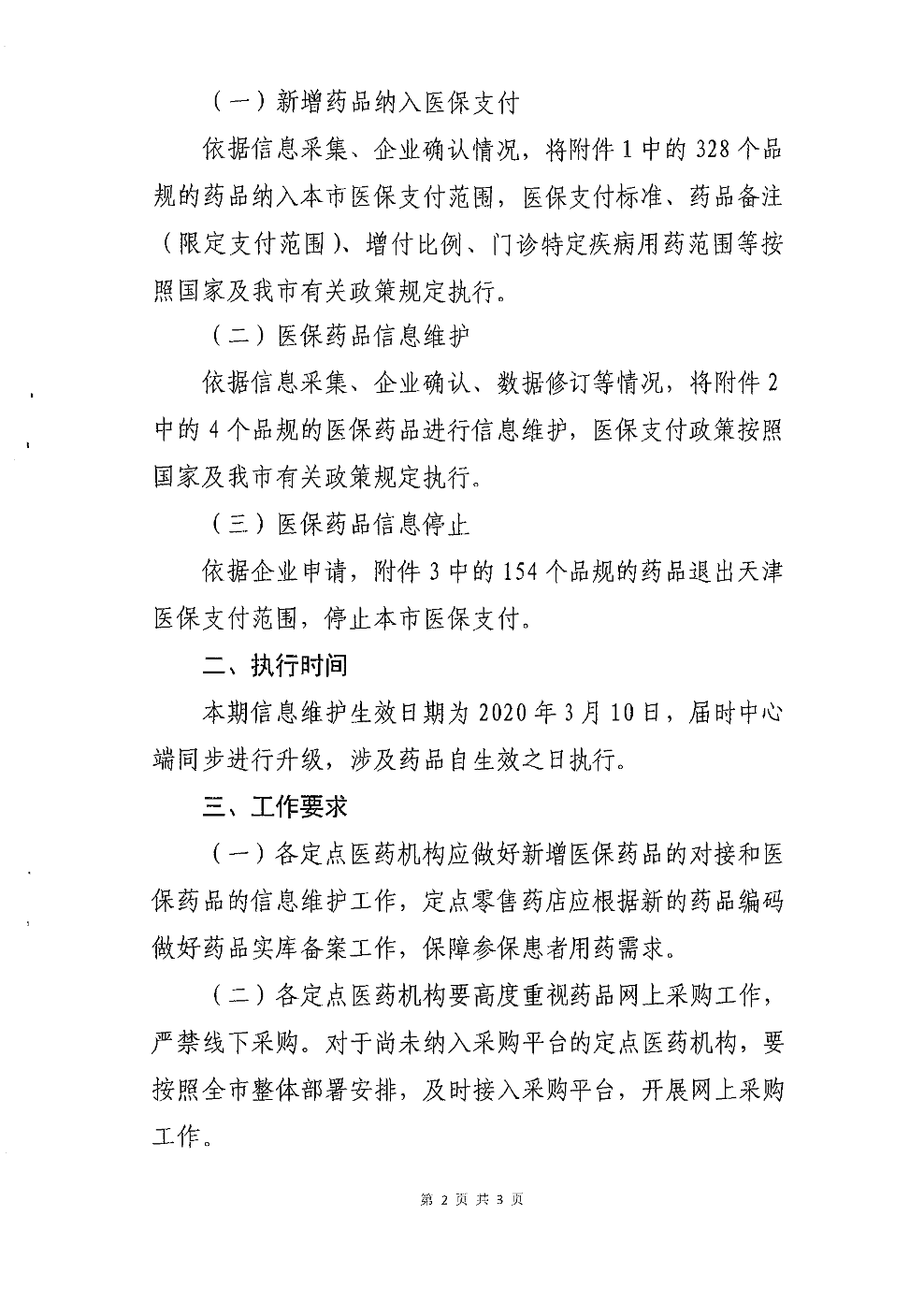 【天津】天津市关于纳入本市医保支付范围相关药品信息维护的通知 (2020年第二期)
