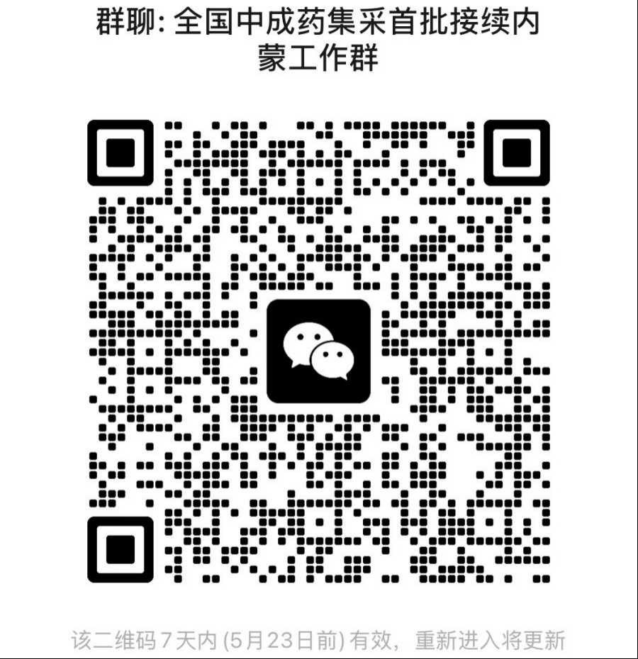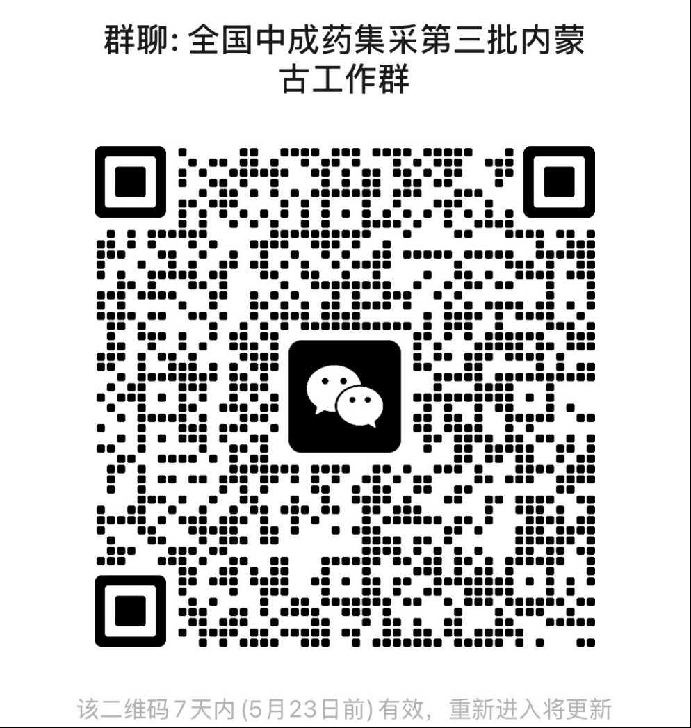 中选生产企业及时扫描文件下方二维码进入相应集采内蒙古工作群,按群公告要求规范开展相关工作。