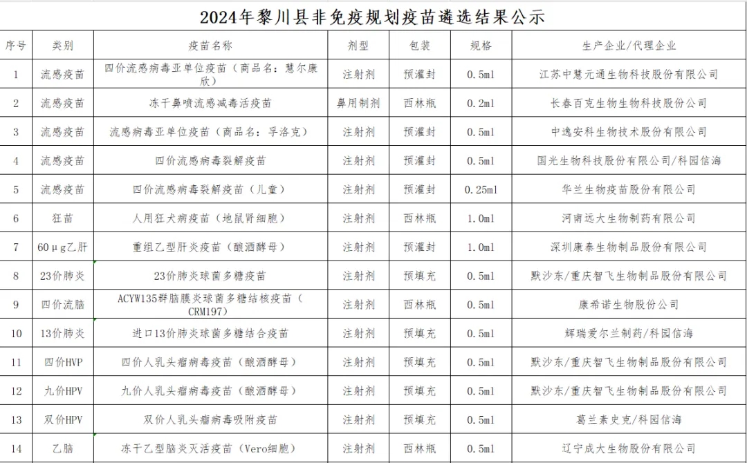 【抚州】关于2024年黎川县非免疫规划疫苗遴选结果的公示