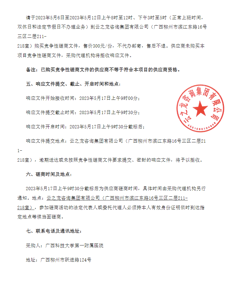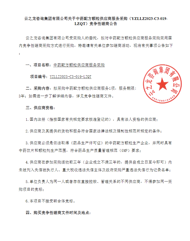 【广西科技大学第一附属医院】广西壮族自治区云之龙咨询集团有限公司关于中药配方颗粒供应商服务采购(YZLLZ2023-C3-019-LZQT)竞争性磋商公告