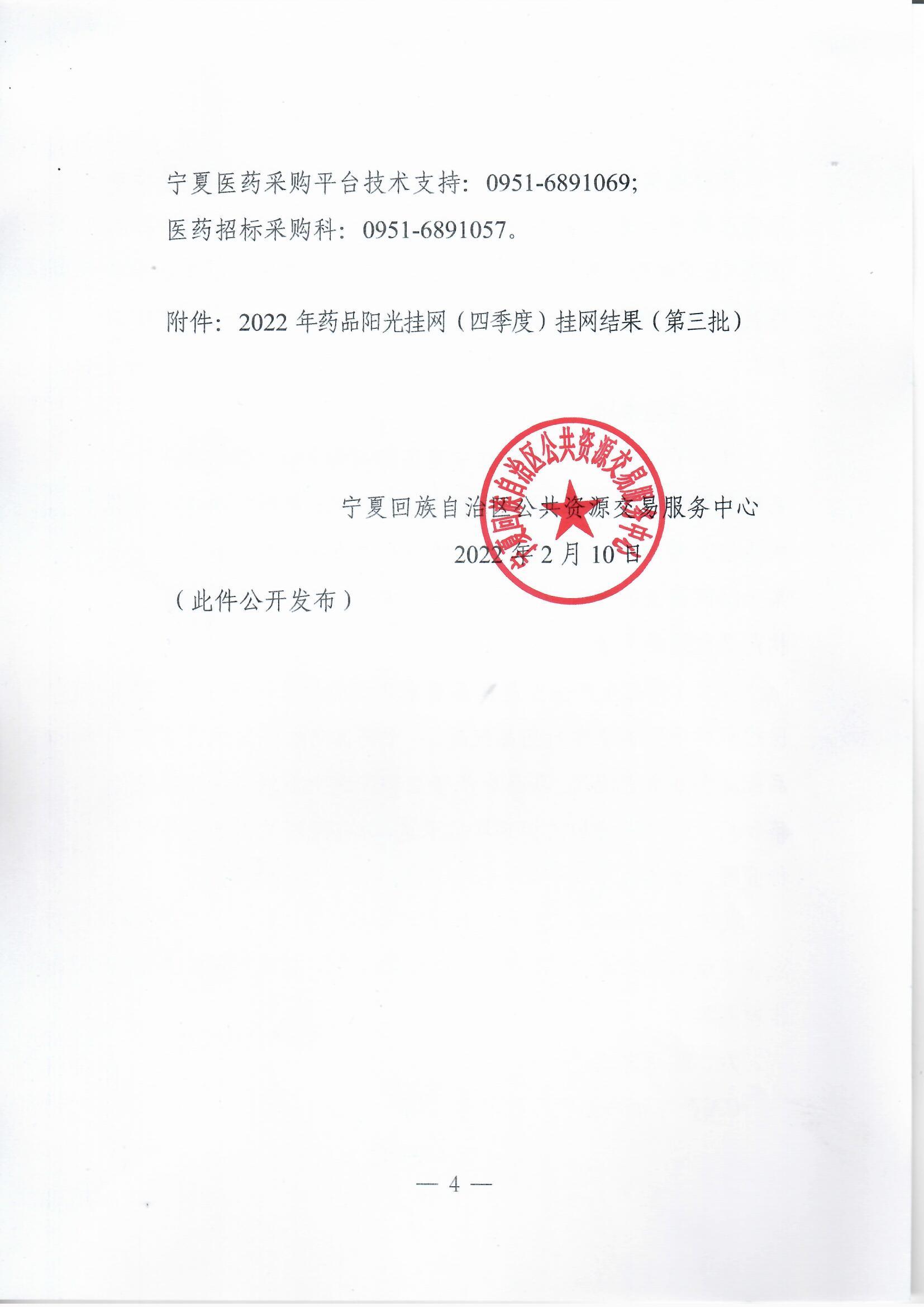 附件:2022年药品阳光挂网(四季度)挂网结果(第三批)