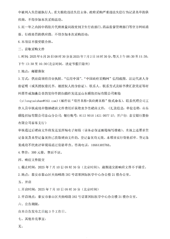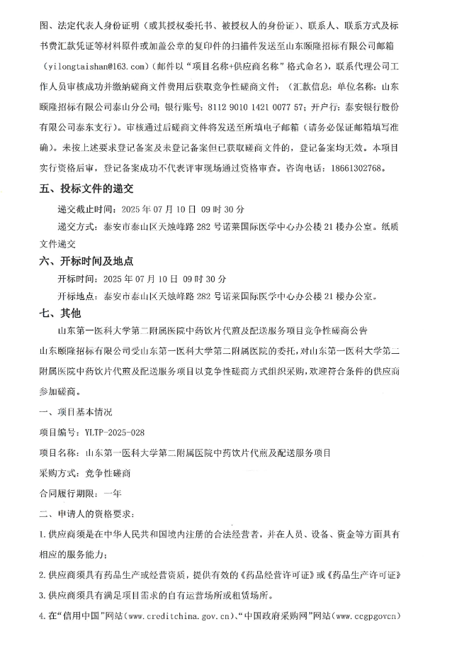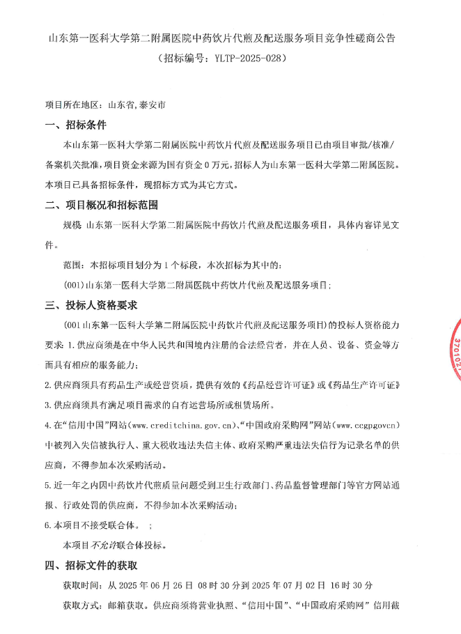 【山东第一医科大学第二附属医院】山东第一医科大学第二附属医院中药饮片代煎及配送服务项目竞争性磋商公告