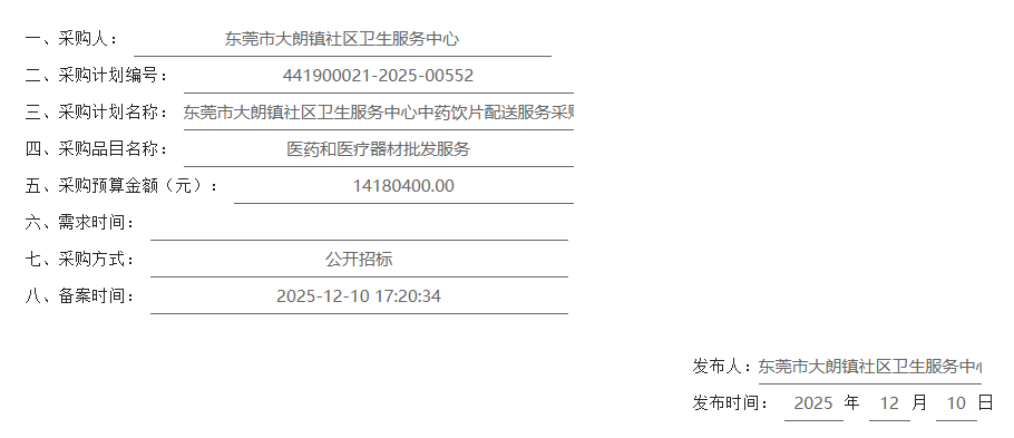 【东莞市大朗镇社区卫生服务中心】广东省东莞市大朗镇社区卫生服务中心中药饮片配送服务采购项目