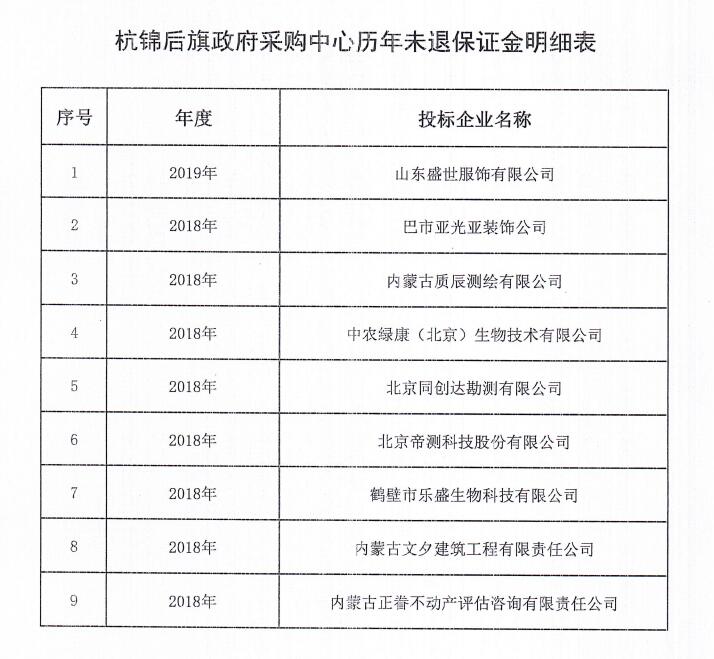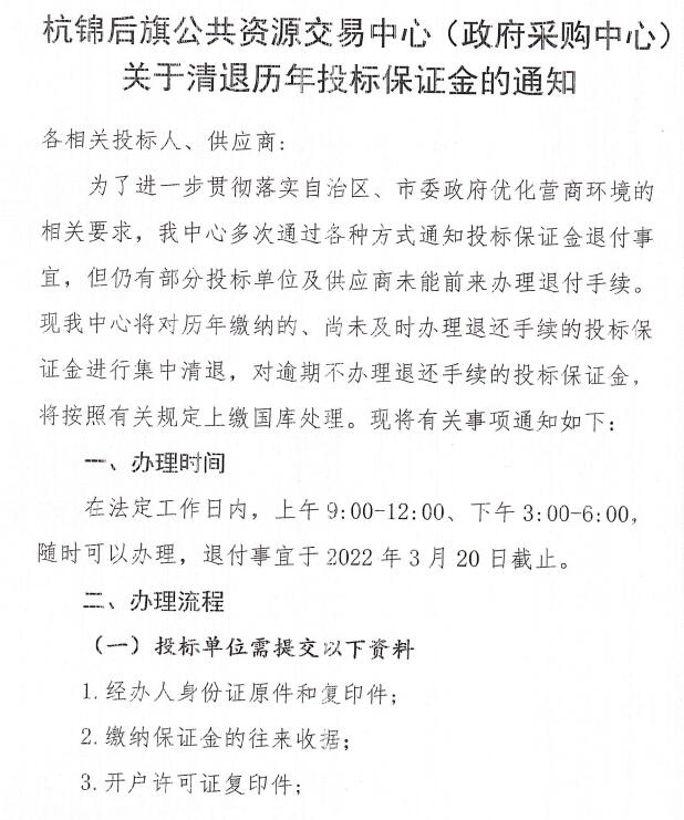 【巴彦淖尔市】杭锦后旗公共资源交易中心(政府采购中心)关于清退历年投标保证金的通知