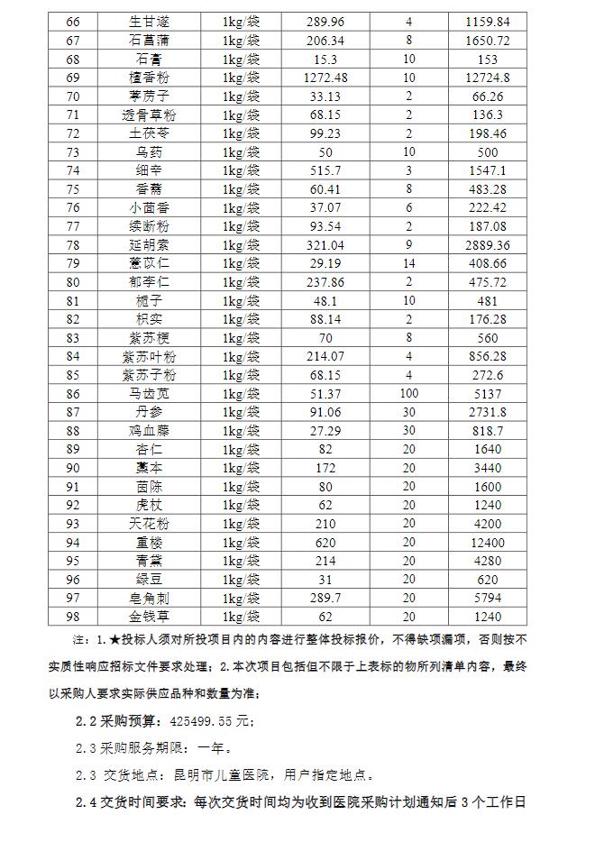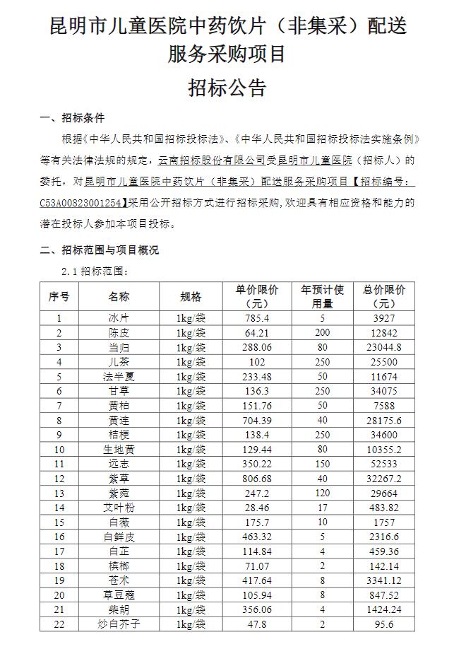 【昆明市儿童医院】云南省昆明市儿童医院中药饮片(非集采)配送服务采购项目