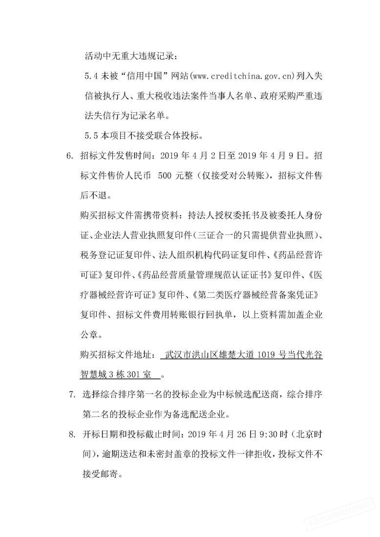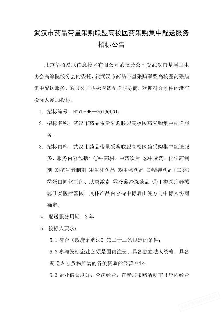 【武汉】湖北省武汉市药品带量采购联盟高校医药采购集中配送服务招标公告
