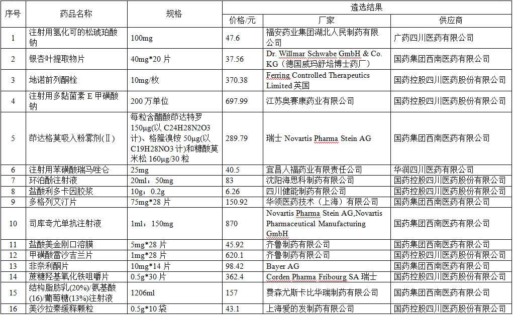 【成都市第七人民医院】四川省成都市第七人民医院新进院药品厂家遴选结果公告