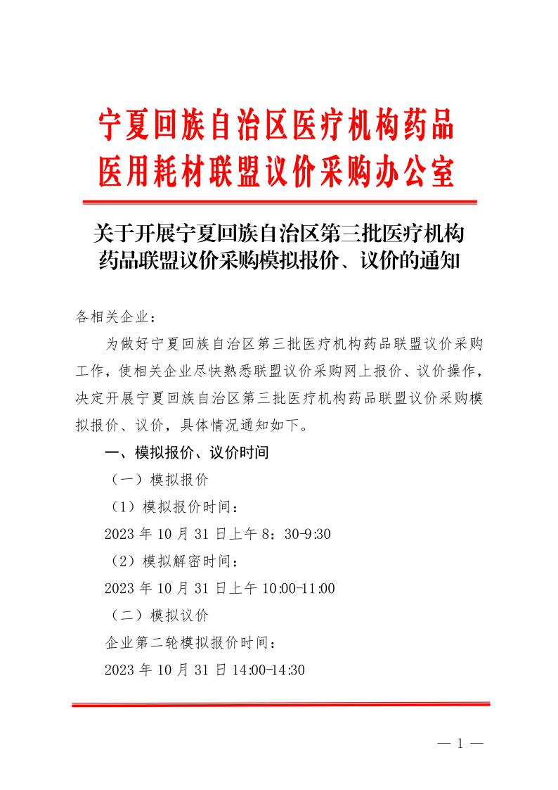 为做好宁夏回族自治区第三批医疗机构药品联盟议价采购工作,使相关企业尽快熟悉联盟议价采购网上报价、议价操作,决定开展宁夏回族自治区第三批医疗机构药品联盟议价采购模拟报价、议价,具体情况通知如下。