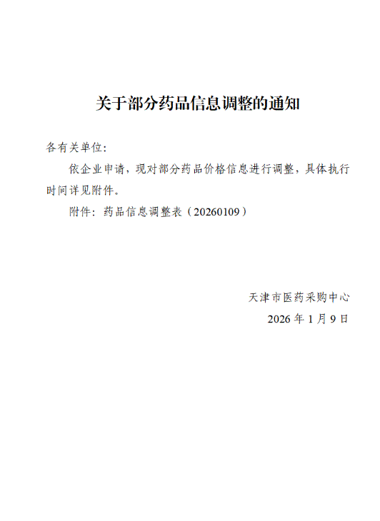 【天津】天津市关于部分药品信息调整的通知(20260109)