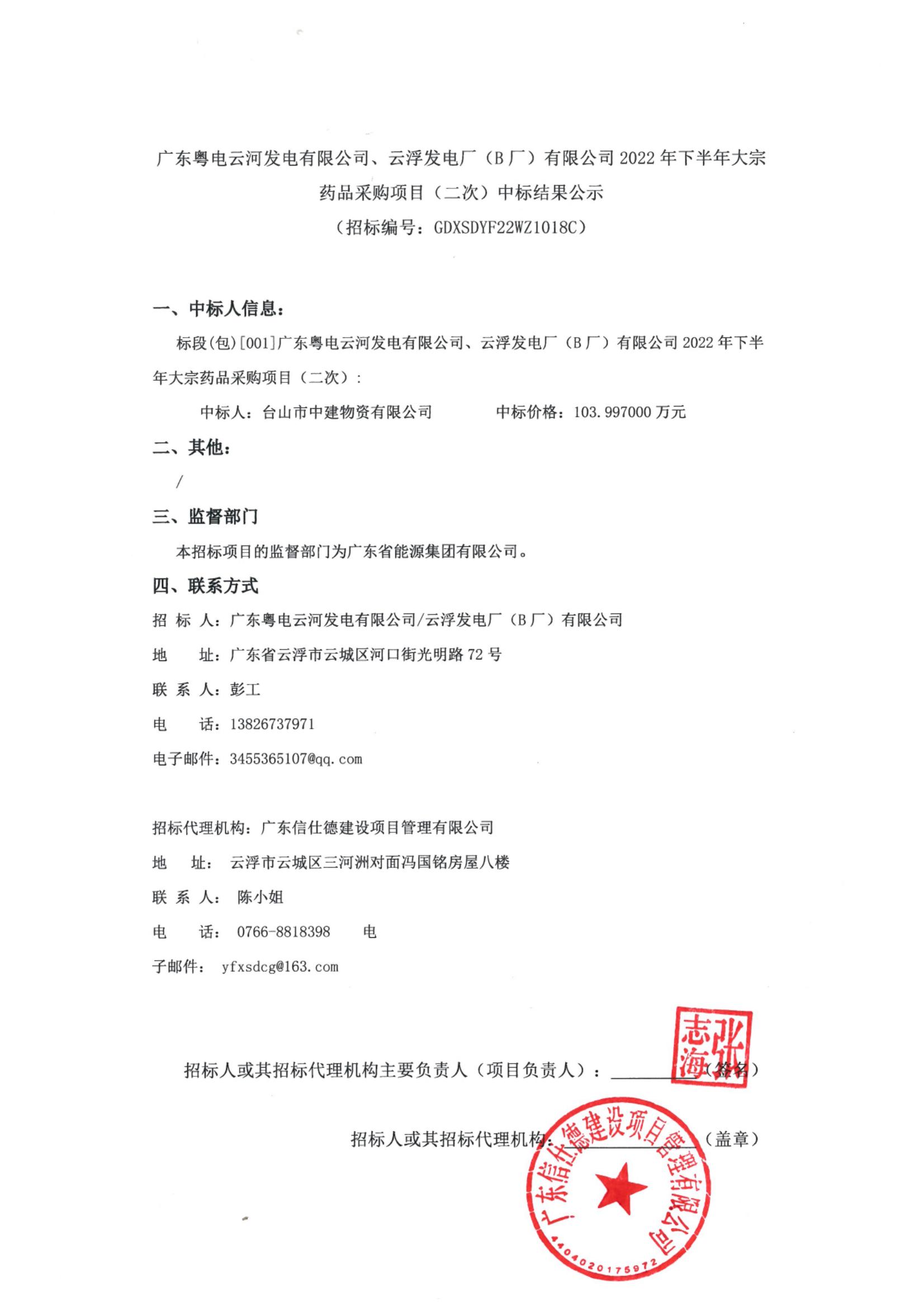 【广东粤电云河发电有限公司】广东粤电云河发电有限公司、云浮发电厂(B厂)有限公司2022年下半年大宗药品采购项目