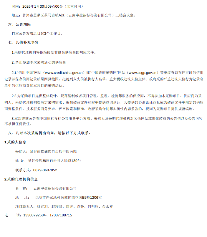 【普洱市景谷傣族彝族自治县中医医院】云南省普洱市景谷傣族彝族自治县中医医院中药配方颗粒及傣药饮片配送服务竞争性磋商公告