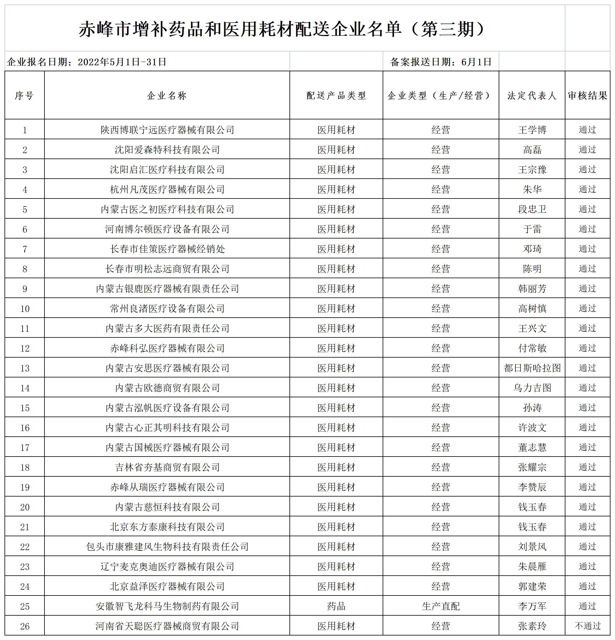【赤峰】内蒙古自治区赤峰市增补药品和医用耗材配送企业名单(第三期)