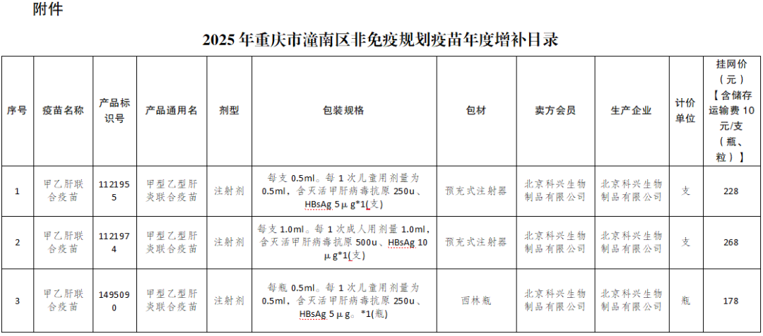 【重庆】2025年重庆市潼南区非免疫规划疫苗增补公示