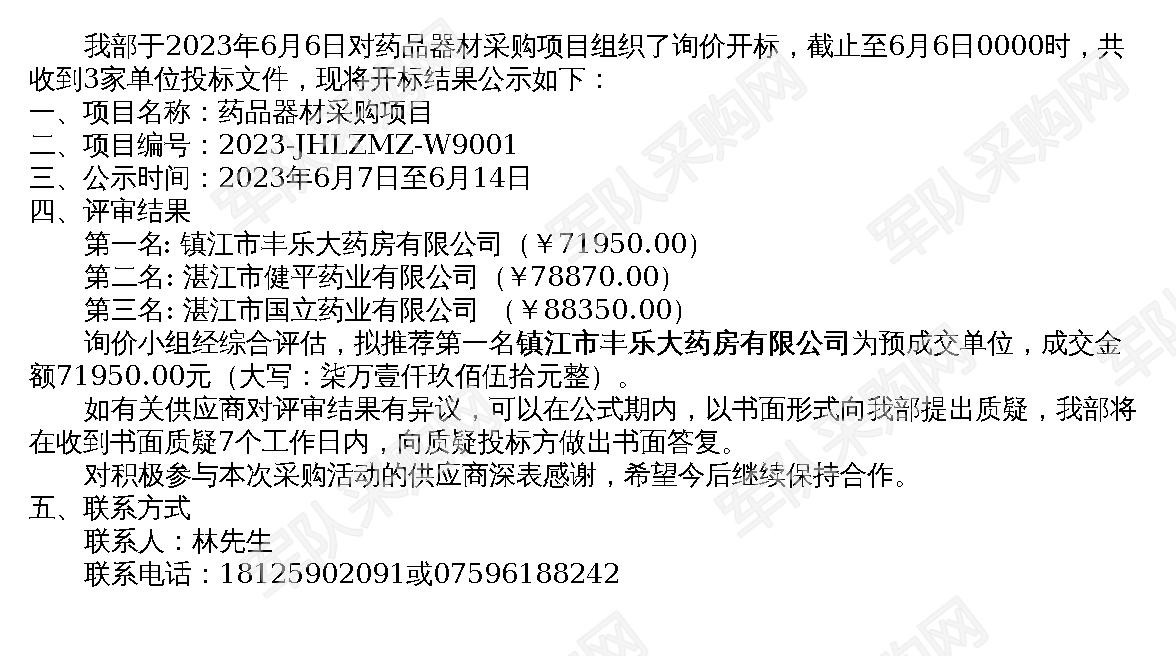 【军队采购】军队采购网药品器材采购项目(2023-JHLZMZ-W9001)