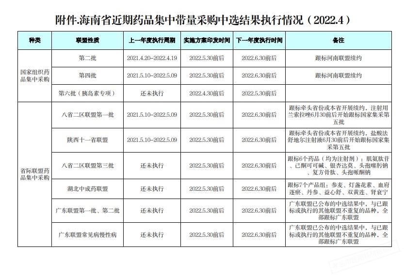 【海南】关于落实近期国家和省际联盟组织药品集中带量采购工作的预通知