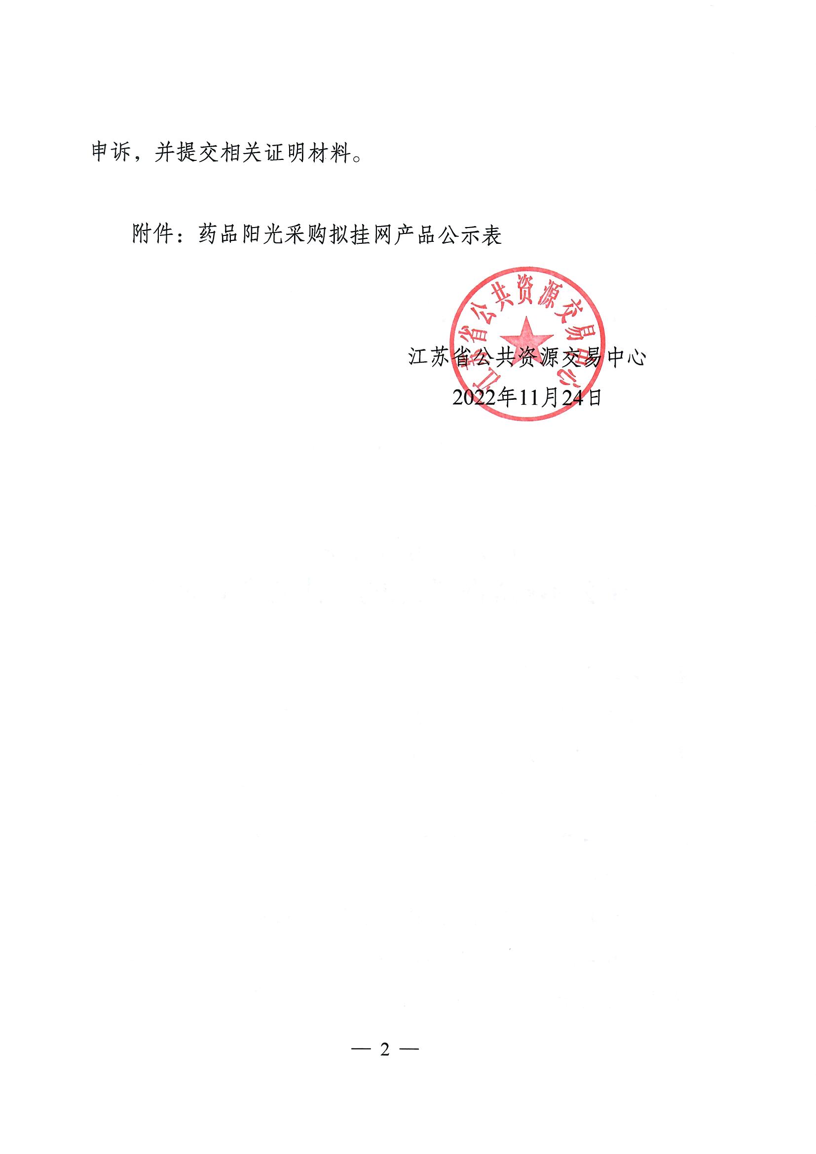 如有异议,企业须在公示期内通过江苏省公共资源交易平台(药品分类采购-其他-阳光挂网采购申诉(202211-5))进行申诉,并提交相关证明材料。