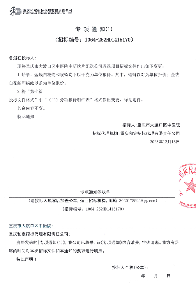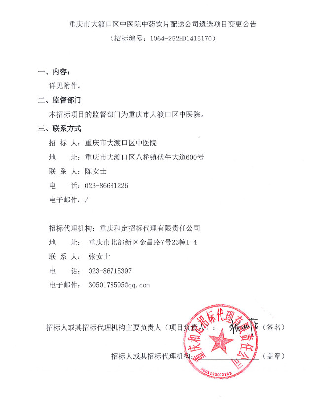 【重庆市大渡口区中医院】重庆市大渡口区中医院中药饮片配送公司遴选项目变更公告