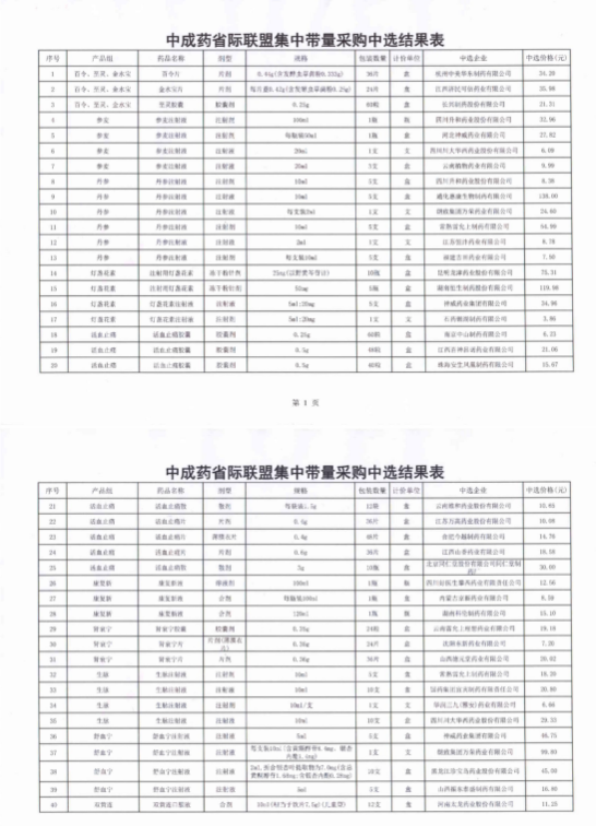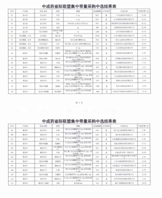 【泸州】四川省泸州市医疗保障局中成药省际联盟集中带量采购中选结果表
